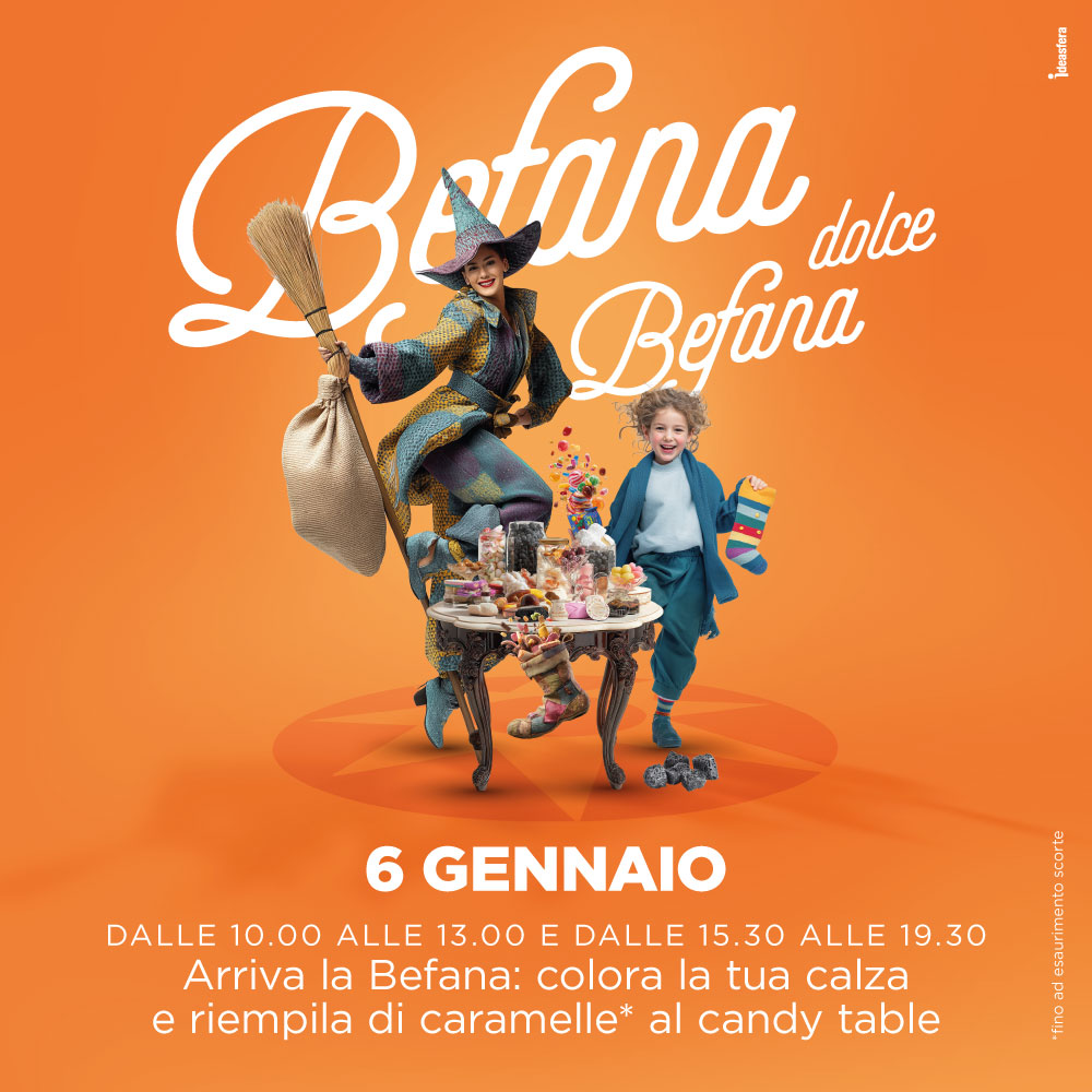 Grotte Center, 1 befana, 3 comici, tante risate e offerte imperdibili.