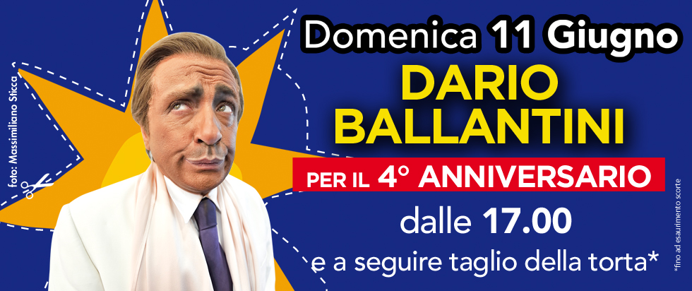 Domenica 11 Giugno dalle ore 17:00 non perderti i festeggiamenti del Centro con DARIO BALLANTINO!! A seguire, Taglio della torta*