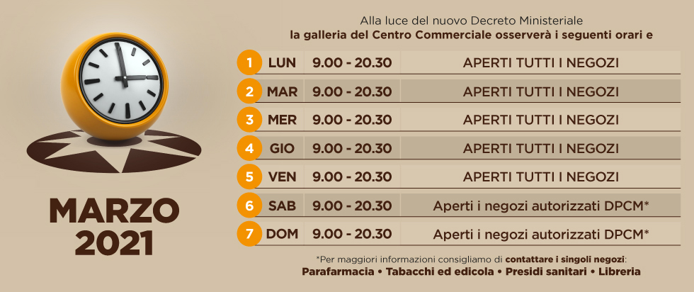 Orari dal 1 al 2 Marzo