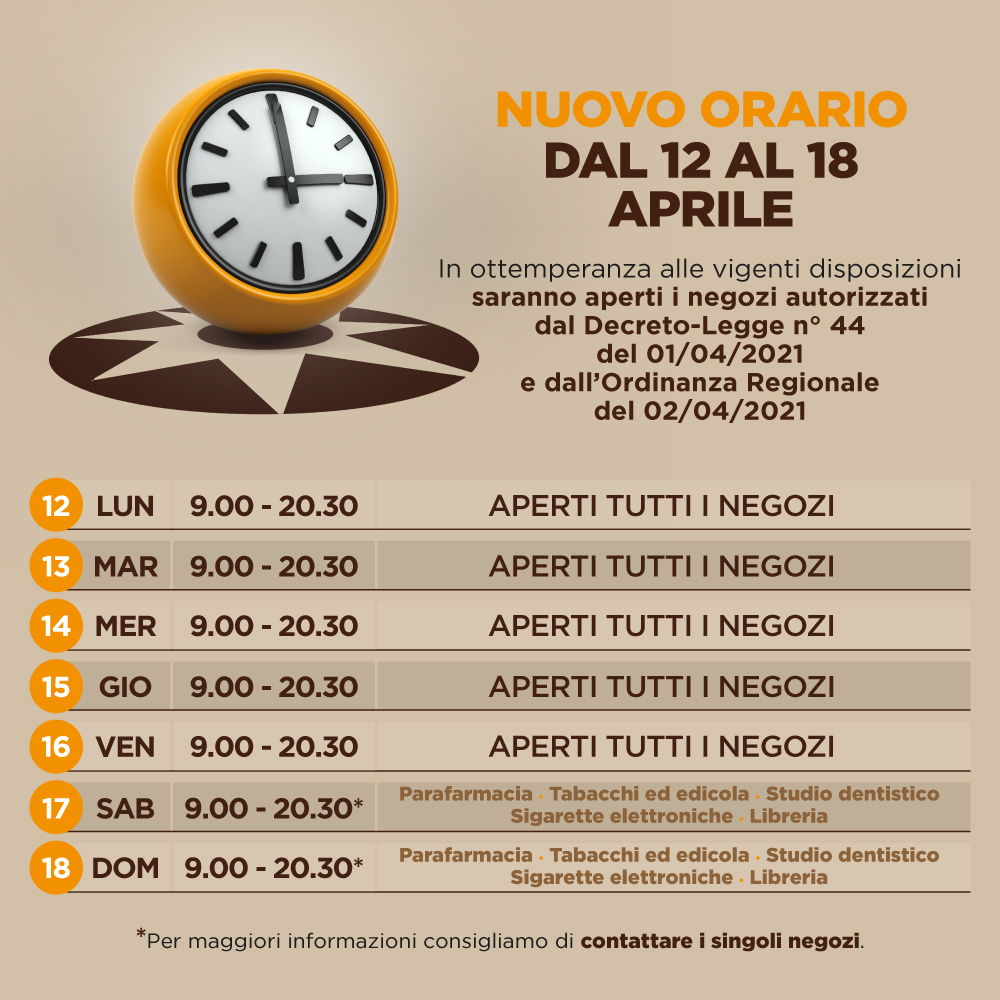 Orari dal 12 aprile al 18 aprile