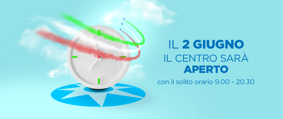 Il 2 giugno il Centro sarà APERTO con il solito orario 9.00 - 20.30