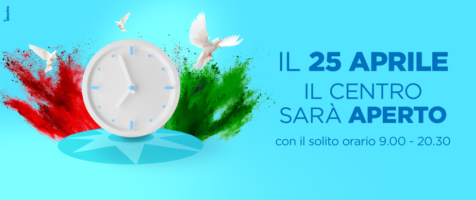 Il 25 Aprile il centro sarà aperto con il solito orario 9.00 - 20.30