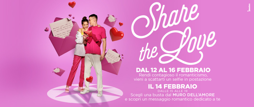 Rendi contagioso il romanticismo, vieni a scattarti un selfie in postazione. Il 14 febbraio dalle 15 alle 19 scegli una busta dal MURO DELL'AMORE e scopri un messaggio romantico dedicato a te