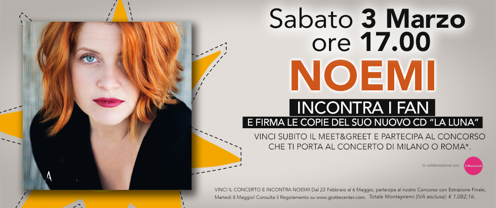 Sabato 3 Marzo alle ore 17:00 vieni ad incontrare NOEMI, che firmerà le copie del suo nuovo CD* "La Luna".