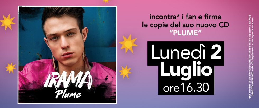 Lunedì 2 Luglio alle ore 16:30, IRAMA, il Vincitore di Amici 2018, sarà presente per firmare le copie del suo nuovo CD "PLUME".