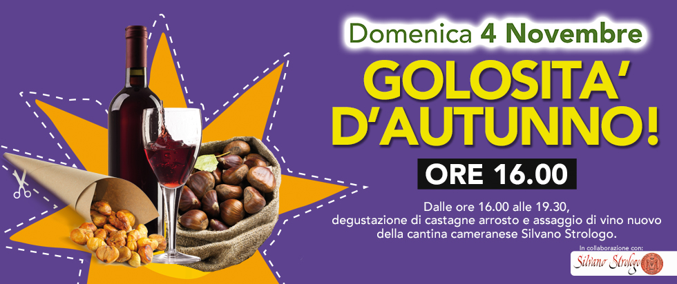 Domenica 4 Novembre dalle ore 16:00 gusta la famosa accoppiata castagne e vino! Grazie alla collaborazione della cantina di Camerano Silvano Strologo, potrete degustare il vino nuovo prodotto. Degustazioni...........su misura!
