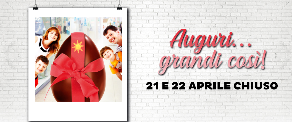 Il Centro Commerciale Grotte Center augura a tutti serene feste di Pasqua e Pasquetta. Vi aspettiamo Martedì 23 Aprile!